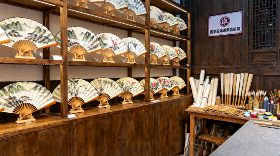 Visit the Rongchang Folding Fan Workshop to observe the traditional fan-making process, listed as national ICH.